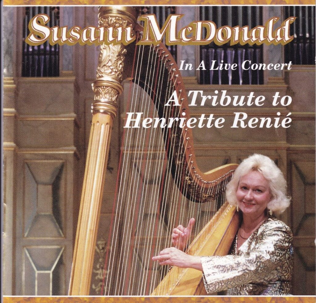 アメリカ合衆国に目を転じるとルニエに教えを受けたハーピストたちによる「伝説」の録音が目立つ。マルセル・グランジャニー、ミルドレット・ディリング、ヴァージニア・モーガン、そして晩年の弟子であったスーザン・マクドナルド。特にマクドナルドはLP時代に折に触れルニエ作品を取り上げ、さらに1975年の生誕100年に際してはミネアポリスで「トリビュート・コンサート」を開催。そのライヴがカセットで発売され、さらにCD化された。そこには独奏用の三大作品(すなわち《伝説》、《交響的小品》、《幻想的バラード》)をはじめとする作品が収められている。オリジナル作品では有名な《リュタンの踊り》と《黙想》も③「A Tribute to Henriette Renié In A Live Concert / Susann McDonald」(D-CD 1002)。