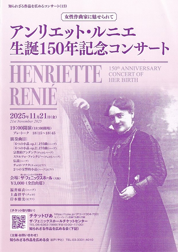 ●「アンリエット・ルニエ生誕150年記念コンサート」のお知らせ
