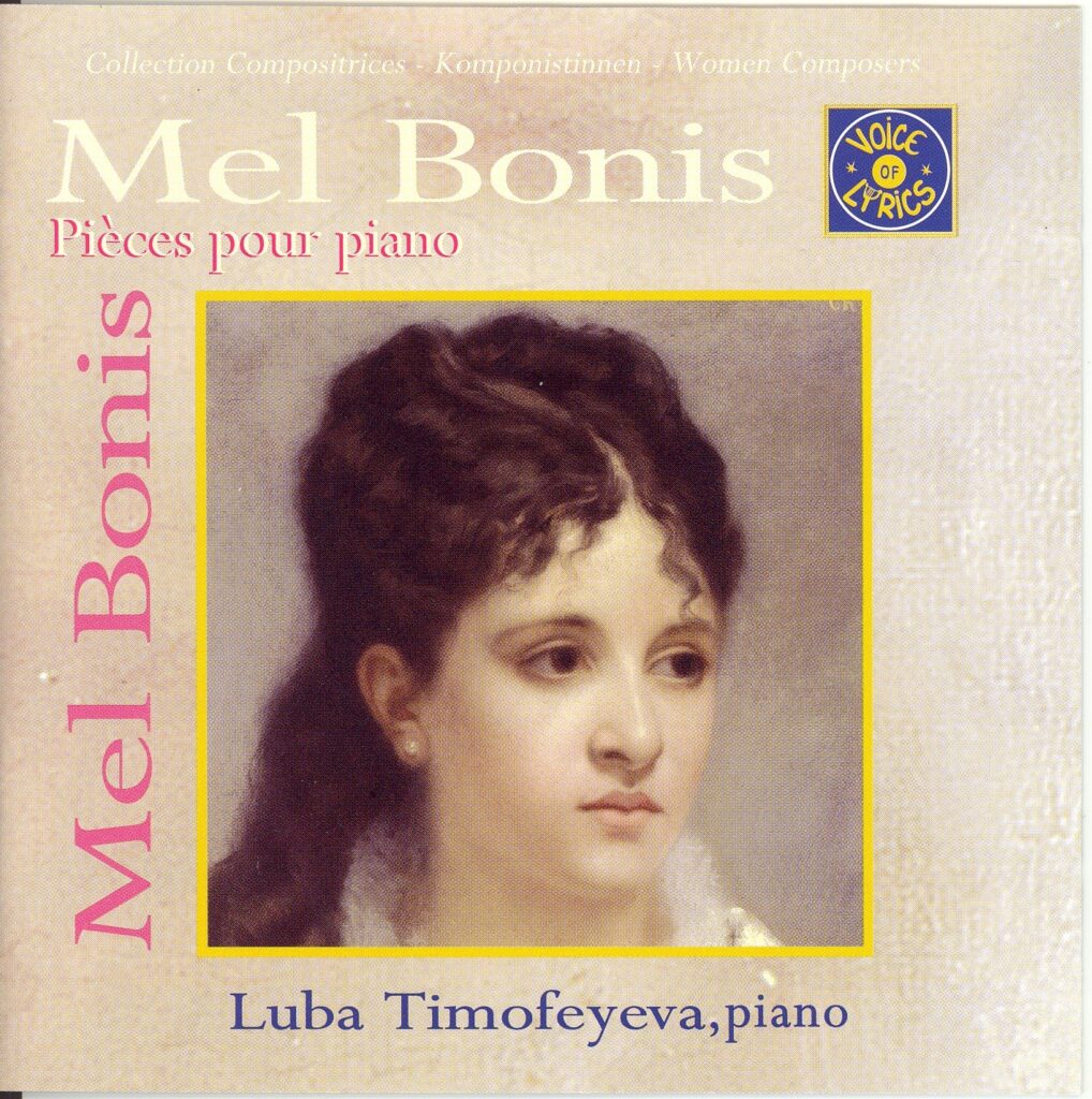 一方、フランスでの録音は当初Voyce of Lyrics社からのものが中心だった。ロシアの名手リューボフ・チモフェーエワが同社の「女性作曲家シリーズ」の1枚として『ファランク、グレンダール:ピアノ曲集』に続いて1998年に『メル・ボニス:ピアノ小品集』[VOL C 341]④を録音している。《伝説の女性たち》からの3曲(〈メリザンド〉、〈デズデモーナ〉、〈サロメ〉)、〈傷ついた大聖堂〉、〈メヌエット〉、〈黄昏に〉など。私や小林緑もこのCDを聴いてもっとピアニストたちに弾いてもらいたいと思うようになった。復興運動の初期段階でこのメカニックのしっかりした録音が登場したのは大きかった。同レーベルからは他にも『宗教的声楽作品集』[VOL C 345]、エルフリーダ・アンドレー、ナディア・ブランジェとカップリングされた『オルガン作品集』[VOL C 343]といった競合盤のほとんど無い貴重な録音が相次いだ。