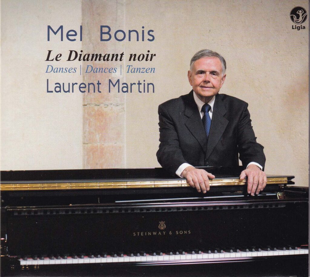 そしてアルカン、オンスロウ、ボエリをはじめ知られざるフランスのピアノ音楽に心血を注ぐロラン・マルタンはメル・ボニスの復興運動にも大きく貢献した。Voyce of Lyricsには1998年に『3つのソナタ(フルート、ヴァイオリン、チェロ)』[VOL C 342]⑤、2000年には『ピアノ四重奏曲集』[VOL C 344]を録音。その後はLigia Digitalレーベルに『黒いダイヤモンド~舞曲集』[Ligi 0103298-16]⑥、『守護天使~ピアノ作品集』[Ligi 0103181-07]、そしてクロディーヌ・シモンとの『クレオパトラの夢~四手ピアノ作品集』[Lidi 0103241-12]と3枚のメル・ボニスのピアノ・アルバムを録音。当然のことながら同社で発売した『類稀な女性作曲家たち』[Ligi 0103341-19]というアンソロジーにもモンジェルー、シャミナード、ポリニャック、セルヴァとともに取り上げ3曲を収めている。このように20世紀末から21世紀のはじめにかけてマルタンの果たした功績は特筆すべきものだった。これまで色々な《フルート・ソナタ》のCDを聴いてきたが個人的にはマルタンとクララ・ノヴァコヴァによるものが流麗さでも抒情性でも未だにベストではないかと思っている。Ligia Digitalレーベルでは『オルガン作品全集』[Ligi 0109324-18]も見逃せない。何といってもフランクが最初にその才能を認めた作曲家だったのだから。ジョルジュ・ラルティゴによる演奏。もうひとつ初期の録音で重要なのは『メル・ボニス:宗教音楽~ジャン・ラシーヌを讃えて』⑦と題した一枚。ジャン・フィリップ・サクロス指揮パレ・ロワイヤルの音楽家たちを中心とした演奏だが、メル・ボニスの孫にあたるユゲット・ジェリオがハープを演奏している点に注目されたい。ユゲットの娘の一人は夭逝した天才ハーピスト、マルティーヌ・ジェリオ、そしてもう一人は2000年に共に「メル・ボニス協会」を立ち上げたクリスティーヌ・ジェリオなのだ。