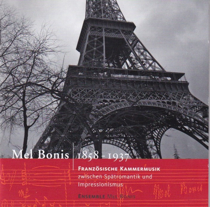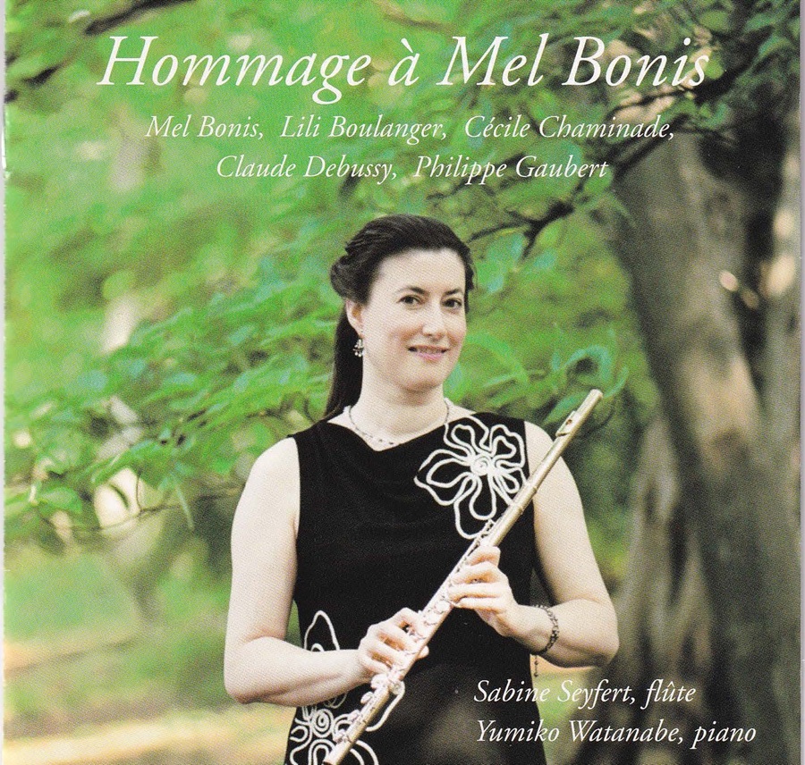 メル・ボニスのCD録音歴を追っていくと、その復興運動の推移が垣間見えてくる。ある私家盤がそのことを象徴している。それは復興運動の立役者だったエバーハルト・マイヤー(1937~2005)が1997年に自ら録音した「室内楽作品集」。このマイヤーがメル・ボニスの作品をもっと演奏したいと欲して、この女性作曲家の末裔であるジェリオ家にコンタクトを取らなかったら、恐らくその復興運動は大幅に遅れていたかもしれない。大恩人なのである。本職は医者でチェリストでもある彼はケルン・メル・ボニス・アンサンブルというグループを率いて《フルート・ソナタ》、《ヴァイオリン・ソナタ》、《ピアノ四重奏曲》をほとんど自費出版に近い形で録音・制作している。さらに《組曲》Op.59、《古風なスタイルによる組曲》Op.127、《七重奏曲-幻想曲》Op.72の3曲を録音した本格的な2枚組『メル・ボニス1858-1937、フランスの室内楽』①という形でも再発売している。マイヤーの妻、イングリットはフルート奏者で、一部の録音にも参加。その影響もあってか、ドイツ、ラインフェルデンのEdition Kossack社からフルート関係の楽譜が集中的に発売されている。それらを包括的に取り上げたのがHänssler Classicsから2008年に発売された『メル・ボニス、女性フルート奏者』[CD 93.204]。その時点で既にかなり録音が多くなっていた《ソナタ》はもはや含まずその他の9曲が含まれており、楽譜の宣伝も担っている。タチアナ・ルーランド(フルート)とフローリアン・ヴィーク(ピアノ)を中心としたアンサンブルによる演奏。このようにまずはフルート業界を通じてメル・ボニスの名前を広めるという作戦は大変有効だった。そうそう忘れてはいけない。2003年にコジマ録音から発売された『メル・ボニスに捧ぐ』[ALCD-9047]②と題したザビーネ・ザイフェルト(フルート)と渡辺由美子(ピアノ)による一枚。ゴベール、シャミナード、フォーレ、ブランジェといった同時代の作曲家とともにメル・ボニスのソナタと小品4曲が収められている。このようなCDが復興運動の比較的初期段階において日本で制作されていたのは快挙だった。