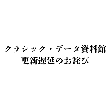 お知らせ TOPICS クラシック・データ資料館 更新遅延のお詫び お知らせ X LINE コピー 2026.01.05 平素より「クラシック・データ資料館」をご利用いただき、誠にありがとうございます。 現在、1月分の更新が行えておらず、皆様にご不便をおかけしております。これは、昨年末にデータ資料館の管理を委託している外部スタッフが急病により倒れ、更新作業が滞っているためです。 現在、暫定的な形での公開が可能かどうかを含め、対応を検討しております。進捗があり次第、改めてご案内いたします。 ご理解のほど、何卒よろしくお願い申し上げます。 レコード芸術ONLINE編集部