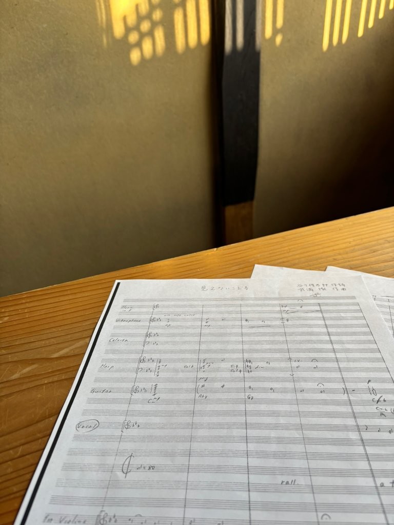 また、アルバム冒頭に収録した4曲の武満さんによって書かれた“うた”は、武満さんご自身による合唱への編曲に聴かれるハーモナイズや、武満さんの手稿譜の中で見つけたオーケストレーションをもとに今回新たに編曲したものです。ここにきてようやく、私は私なりに武満さんの“うた”をどのようにしてギターで表現すべきかということに、はっきりとした輪郭のあるヴィジョンを抱くようになりました。武満さんにとって、“うた”は開かれた生き方の象徴でした。ʻ強制ʼするのではなくて、音楽が呼びかけることのできる自由や敬愛を基盤としたʻ共生ʼとでも言うべきつながりへの願いがそこにあったのかもしれません。次回は、今回新たに発見されて収録した〈おはよう!テキサス〉や私にとって特別な歌である〈三月のうた〉、そしてアルバムの共演者以上の存在として私が尊敬しているフルートの岩佐さんやレコーディングのエピソードなどを中心に書かせていただきます。(続く)